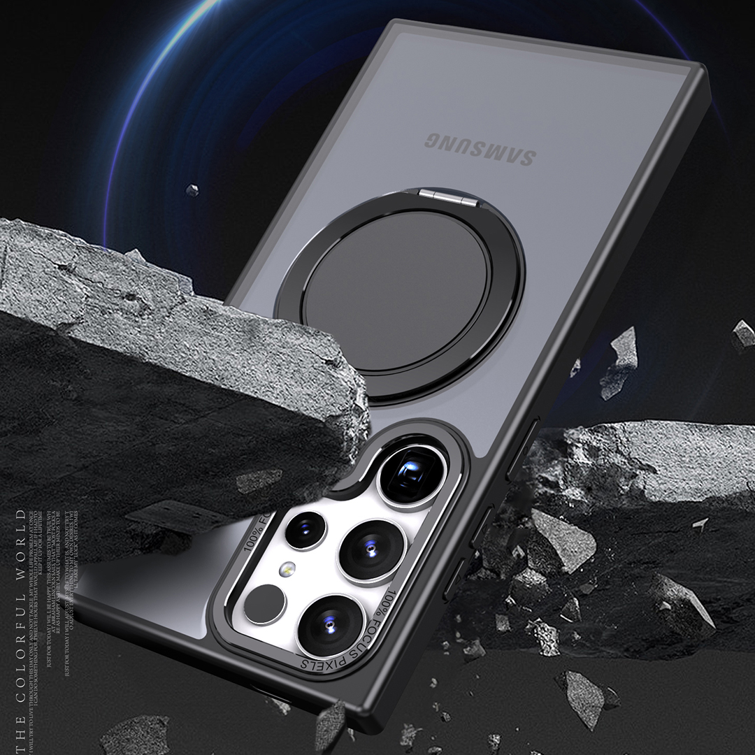 The black titanium phone case integrates magnets